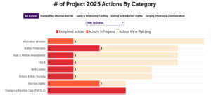 Less than a year into Trump’s presidency, 48% of Project 2025 has been implemented so far, and nearly 40% of the policies attacking reproductive freedom are either completed or in progress.