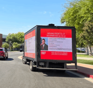 A mobile âMissing Personâ billboard depicting Rep. David Valadao.